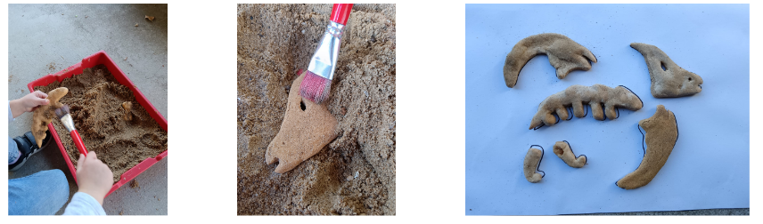 Le moment le plus attendu ? Sans doute celui des fouilles ! Munis de pinceaux , les enfants ont patiemment dégagé des « os de dinosaures » dissimulés dans le sable. Une fois les précieuses trouvailles mises au jour, ils ont travaillé en équipe pour reconstituer les squelettes comme de véritables paléontologues.